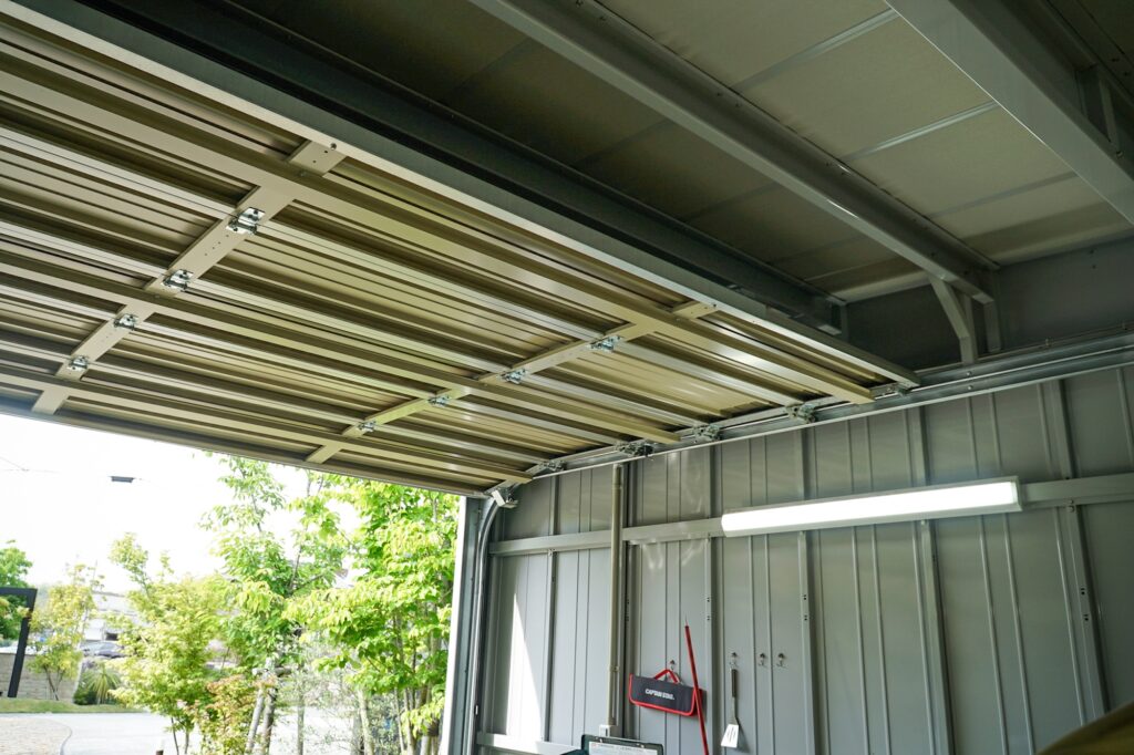 2025年4月に設置したばかりの「ラヴィージュⅢ」。ヨドコウさんから発売されているこちらのガレージは、壁材や天井材などが自由に選べるカスタマイズ性が魅力です。