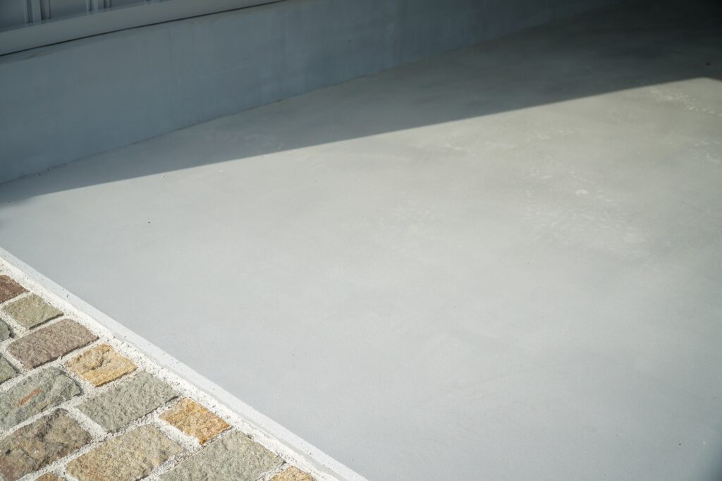 ショールームの「タフレージ」には高基礎仕様が施しており、通常の基礎高さ20cmに対して50cmまで高くなっています。これにより、キャンピングカーや大型車両の収納が可能になります。また、水や油の汚れがにじみにくく掃除がしやすいコンクリートにトップコートを塗った床も一緒にチェックしてみてください。