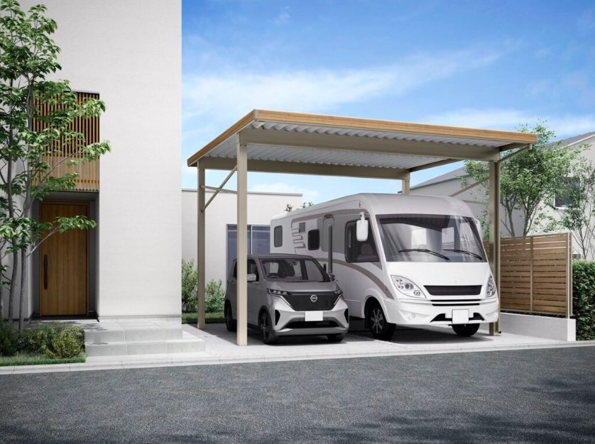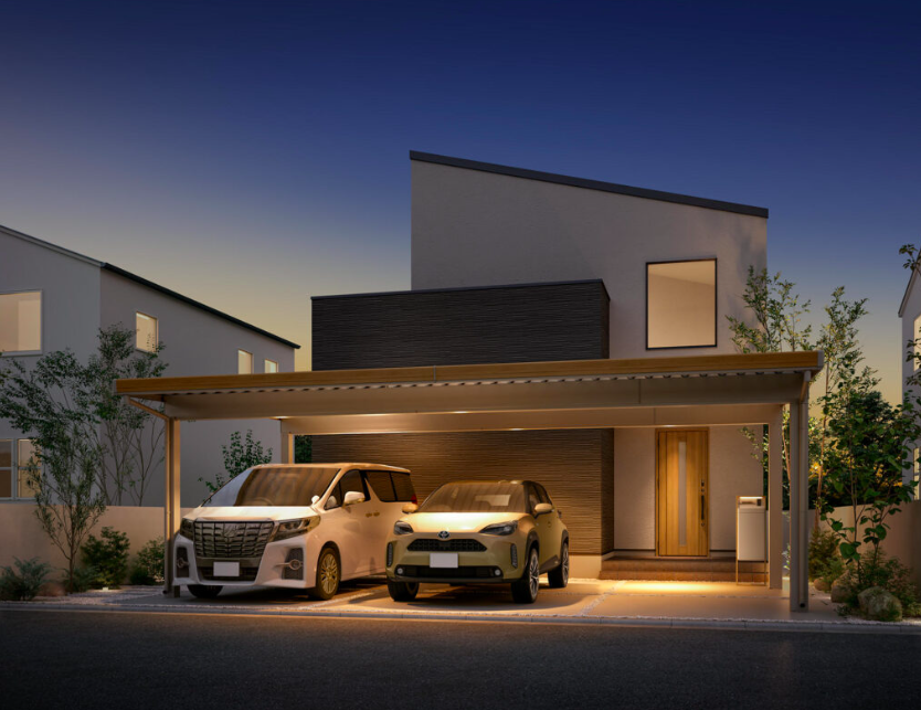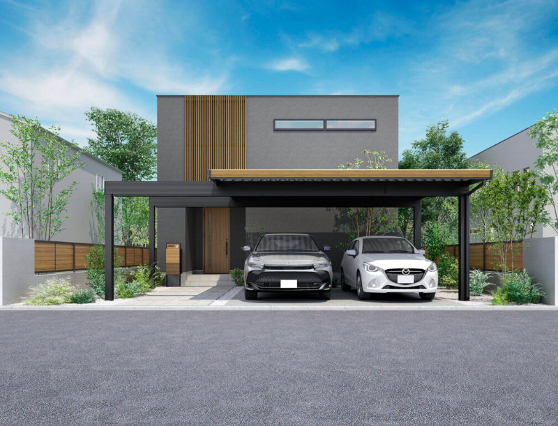 2台用モデルでは、梁が跳ね出すタイプも新しく追加されました。これにより、柱の配置を最小限に抑えつつ、駐車スペースを広く確保できます。また、梁跳ね出しタイプは従来モデルよりもコストを抑えられるため、デザイン性と予算のバランスを両立させたい方にぴったりです。
