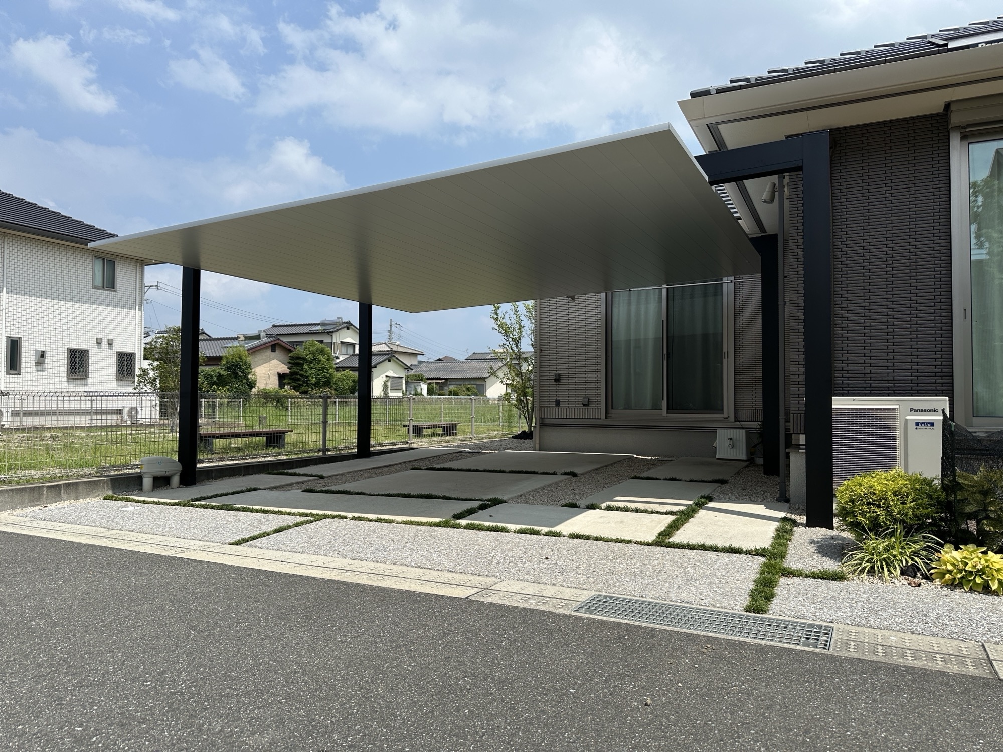 雨の日も安心・快適!カーポート「フーゴF(3台用)」のあるお庭