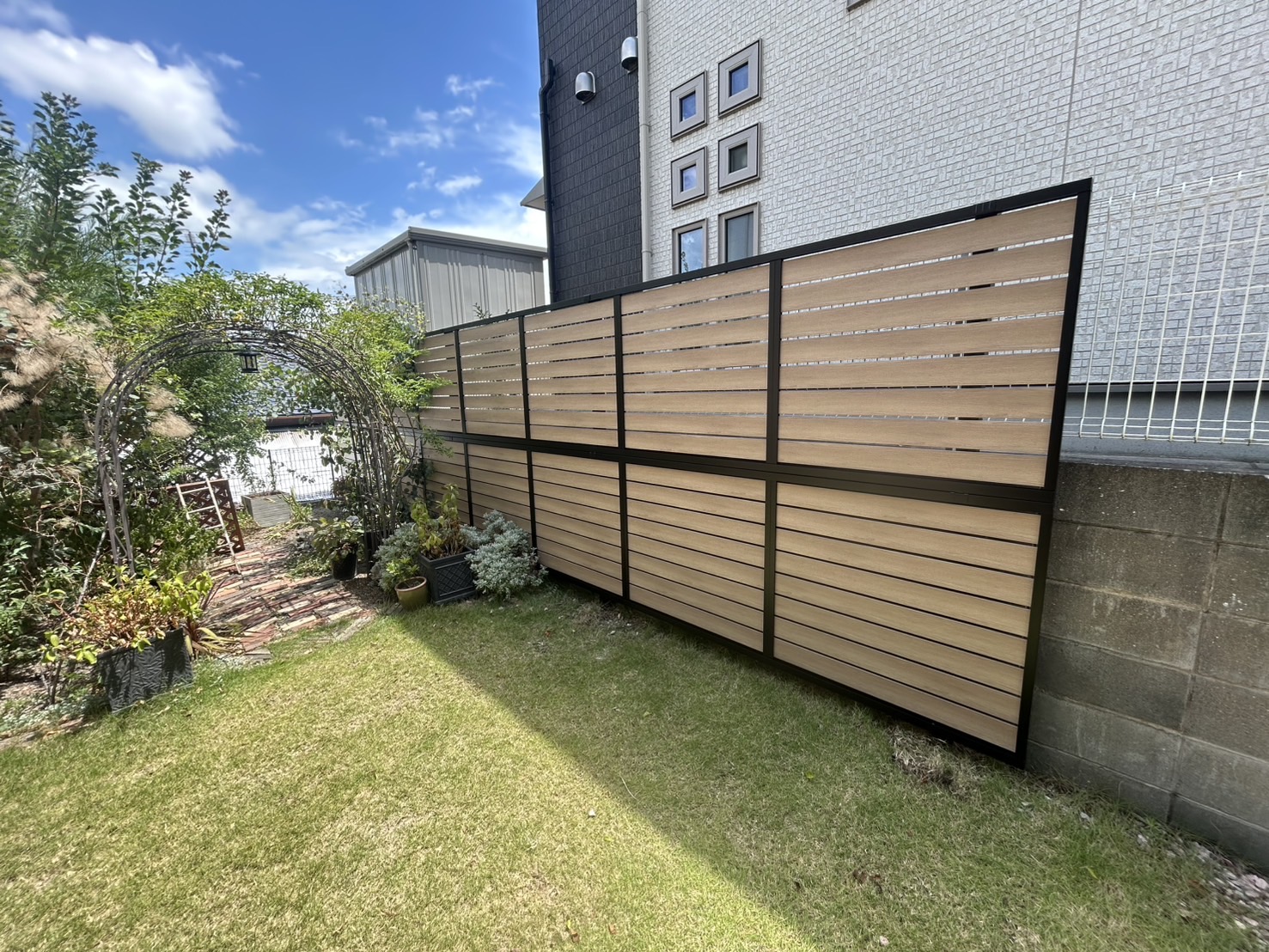 ② 目隠しフェンスで隣家のブロック塀を隠したい